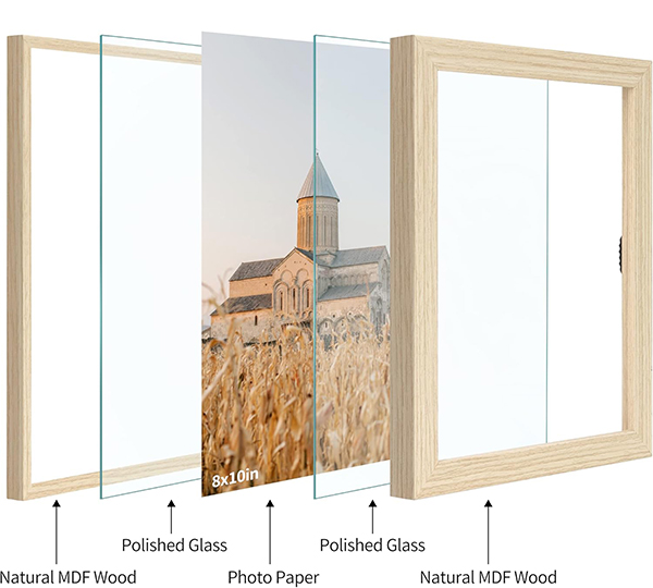 Wooden Photo Frame Double Glass Pressed